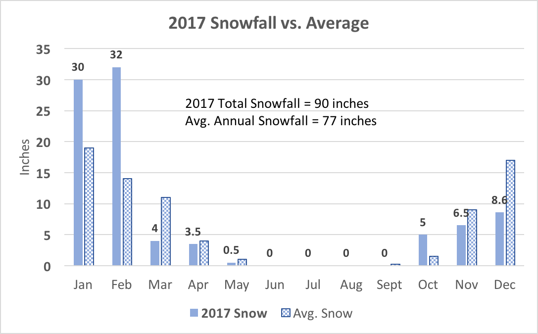 Similarly in January fresh snowfall in the heaviest years amounts to 28 inches or more while. The US average is 205 sunny days. The snow level gradually retreats with divides between the mountain canyons free of snow by August.