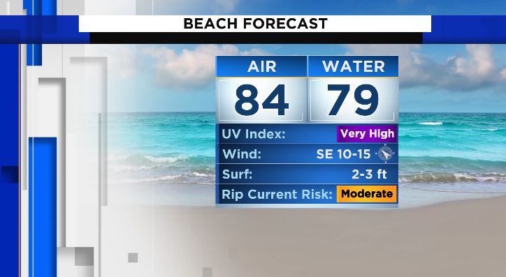 Winds ESE at 10 to 15 mph. Thursday Ultraviolet index in Jacksonville Beach. Max UV Index 5 Moderate.